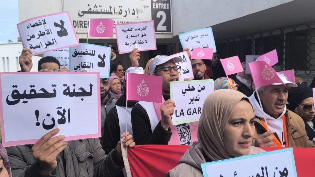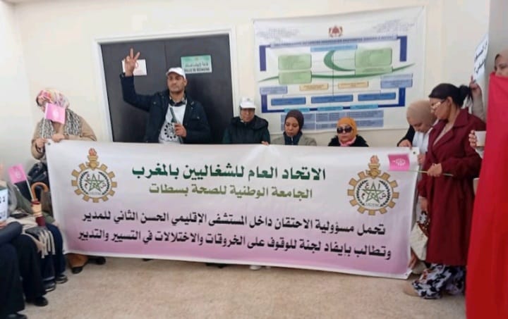 نظّم عدد من الأطر الصحية العاملة بالمركز الاستشفائي الإقليمي الحسن الثاني بمدينة سطات، يوم الثلاثاء، اعتصامًا إنذاريًا أمام إدارة المستشفى، استمر لما يقارب ساعتين، بدعم من المكتب الإقليمي للجامعة الوطنية للصحة المنضوية تحت لواء الاتحاد العام للشغالين بالمغرب، احتجاجًا على ما اعتبرته النقابة “ممارسات تعسفية وتمييزية” في حق مناضلات ومناضليها داخل المؤسسة الصحية.