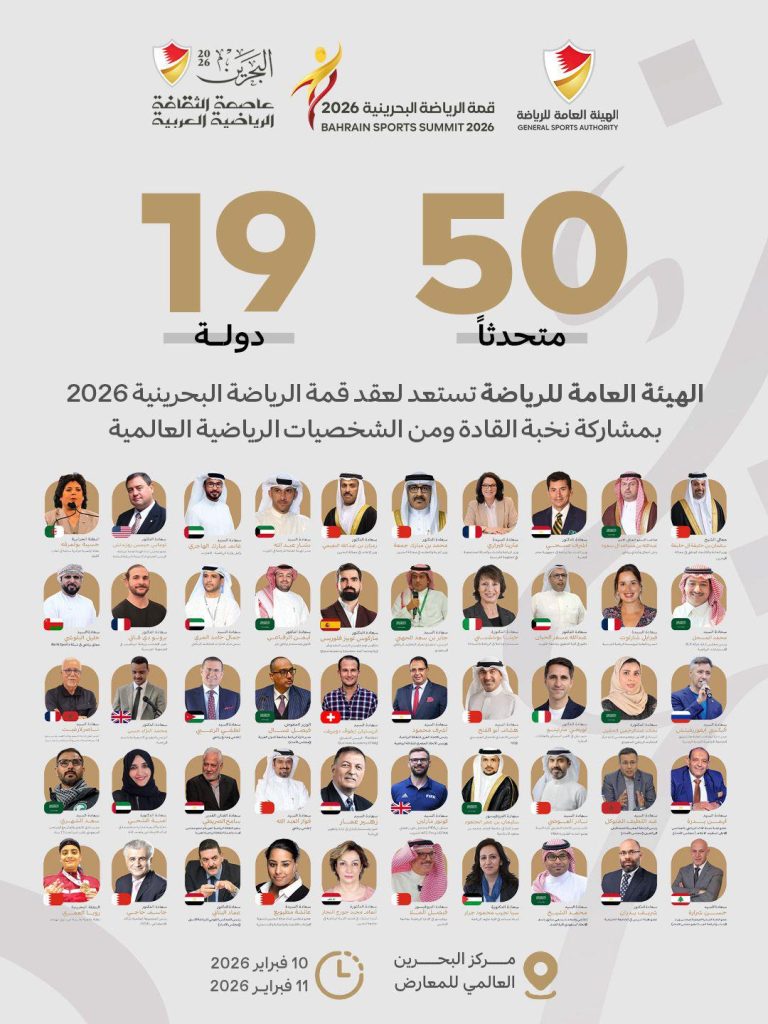 تحتضن مملكة البحرين، يومي 10 و11 فبراير 2026، فعاليات قمة الرياضة وصُنّاع القرار البحرينية، وذلك بمركز البحرين العالمي للمعارض، ضمن مبادرات البحرين عاصمة الثقافة الرياضية العربية، في حدث رياضي فكري رفيع المستوى يعرف مشاركة واسعة لنخبة من القيادات والخبراء والمتخصصين في الشأن الرياضي من مختلف دول العالم.